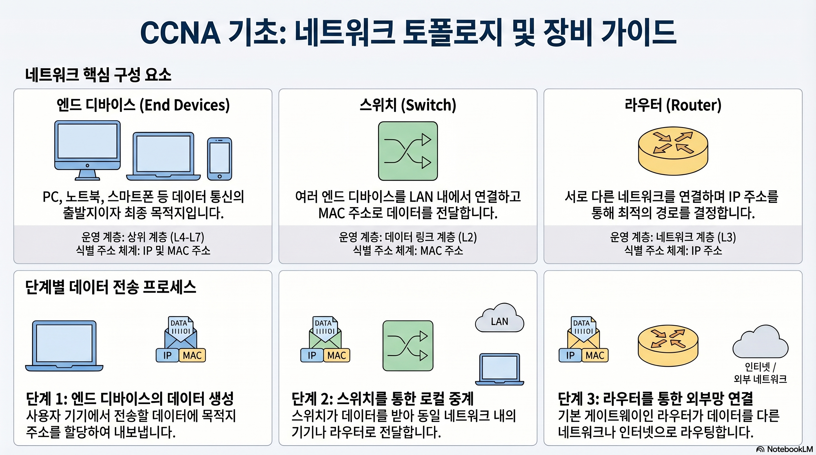 CCNA๋ฅผ ์ฒ์ ๊ณต๋ถํ ๋ ๊ฐ์ฅ ๋จผ์ ์ ํํ ์ก์์ผ ํ๋ ๊ฒ์ ์ฅ๋น ์ด๋ฆ๋ณด๋ค ์ญํ ๊ตฌ๋ถ์