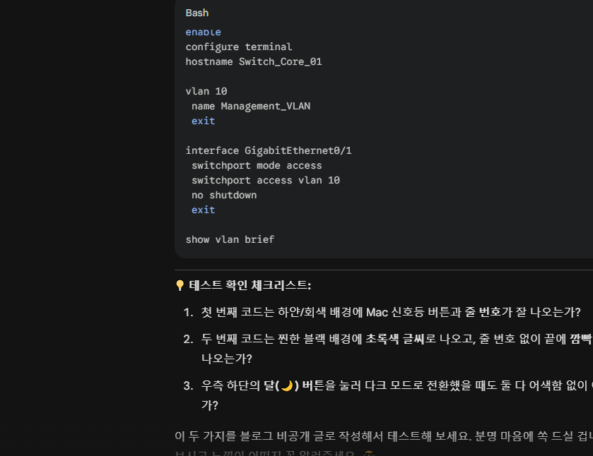 ๐ŸŽฌ ๊ฐ•์˜ ๋ณด๋Ÿฌ๊ฐ€๊ธฐ ๐Ÿ’ป CLI ์‹ค์Šต ๐Ÿ“˜ NotebookLM "> ๐ŸŽฌ ๊ฐ•์˜ ๋ณด๋Ÿฌ๊ฐ€๊ธฐ ๐Ÿ’ป CLI ์‹ค์Šต ๐Ÿ“˜ NotebookLM ๐Ÿ’ก ์ด ๋ธ”๋กœ๊ทธ๋Š” ๋‹คํฌ๋ชจ๋“œ๋ฅผ ์ง€์›ํ•ฉ๋‹ˆ๋‹ค. ๊ธด ๊ธ€์„ ๋ณผ ๋•Œ๋Š” ๋‹คํฌ๋ชจ๋“œ๋กœ ์ „ํ™˜ํ•ด์„œ ๋ณด๋ฉด ํ›จ์”ฌ ํŽธํ•˜๊ฒŒ ์ฝ์„ ์ˆ˜ ์žˆ์Šต๋‹ˆ๋‹ค.๐Ÿ’ก ๋ณธ๋ฌธ์—๋Š” CCNA, VCP, AWS ๊ณต์‹ ๊ต์ œ์™€ ์ž๊ฒฉ์ฆ ๋คํ”„ ์ž๋ฃŒ๋ฅผ ํ•™์Šตํ•œ ์ฑ—๋ด‡๊ณผ NotebookLM ๋งํฌ๊ฐ€ ๊ธ€ ์ƒ๋‹จ๊ณผ ํ•˜๋‹จ์— ์‚ฝ์ž…๋˜์–ด ์žˆ์–ด, ๊ณต๋ถ€ํ•˜๋‹ค๊ฐ€ ํ—ท๊ฐˆ๋ฆฌ๋Š” ๊ฐœ๋…์„ ๋ฐ”๋กœ ์งˆ๋ฌธํ•  ์ˆ˜ ์žˆ์Šต๋‹ˆ๋‹ค.๐Ÿ’ก ์—ฌ๋Ÿฌ๊ฐ€์ง€ cisco CLI๋ฅผ ์ง์„ญ ์‹ค์Šต์„ ํ•ด๋ณผ ์ˆ˜ ์žˆ๋Š” ์‹ค์Šต ์›น์‚ฌ์ดํŠธ๊ฐ€ ์ƒ๋‹จ๊ณผ ํ•˜๋‹จ์— ์‚ฝ์ž…๋˜์–ด ์žˆ์Šต๋‹ˆ๋‹ค.๐Ÿ’ก ์‹ค์Šต์ด ํ•„์š”ํ•œ ๊ฐœ๋…์€ ๊ธ€ ์ค‘๊ฐ„์— ๋ณ„๋„์˜ “์‹ค์Šตํ•ด๋ณด๊ธฐ” ๊ธ€๋กœ ์—ฐ๊ฒฐํ•ด ๋‘์—ˆ์Šต๋‹ˆ๋‹ค.๐Ÿ’ก ํ•™์Šต์„ ์™„๋ฃŒํ•œ ์ดํ›„..